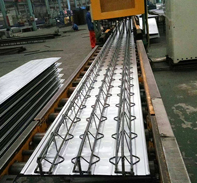 2、鋼筋桁架樓承板在現場施工階段,能夠承受混凝土自重及施工荷載,澆灌泥漿成型后,鋼筋桁架與混凝土形成鋼筋桁架混凝土樓承板。整體性好、防火性能好,剛度大、受力模式合理,并且可以通過調整鋼筋粗細、底板厚度、桁架高度來實現更大的跨度。